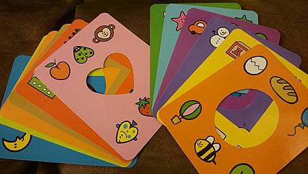 不過這套組合最有意思的,就屬這些學習卡了!只要把這些學習卡放在畫板上,就能使用。如果是剛認識形狀的小朋友,就可以用這種「形狀學習卡」,除了可以指出形狀,還可以用「描」的方式,畫出各種形狀,甚至變形成為各種可愛的物品,學習卡上也有各種範例圖案,讓小朋友參考。